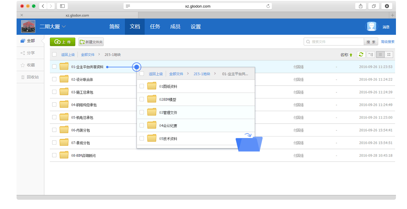 产品依托云计算及互联网技术,以“文档管理”、“任务流程”、“BIM协作”、“团队沟通”为核心,通过建立虚拟的项目协作环境,连接工程项目中的人员、数据和流程,帮助工程项目团队实现成员管理和信息沟通、项目图档的集中存储和高效分发共享、BIM的可视化交流以及各种工作任务流程(如批阅、变更、验收检查等)的执行协调和跟踪落地。