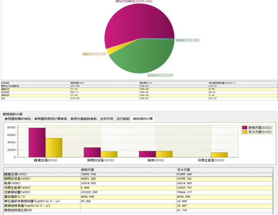 建筑能耗及碳排放计算分析:碳排放计算基于建筑运行能耗计算,参考《建筑碳排放计算标准》对建筑物进行建筑运行阶段碳排放、建材生产及运输阶段、建造阶段、拆除阶段全生命周期碳排放计算;建筑运行阶段碳排放计算可再生能源供能量计算、绿地碳汇固碳量计算;按照《建筑节能与可再生能源利用通用规范 GB55015-2021》一键创建参照建筑计算建筑运行减碳量。 |