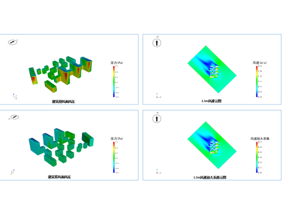 建筑风环境模拟分析:室外通风模拟对建筑室外风环境进行模拟分析,指导和优化建筑布局,获得舒适的建筑室外风环境,从而提高居住环境质量和改善生活品质。可输出模拟工况(夏季、冬季、过渡季等)建筑室外风速、风速方向、风速放大系数、空气龄、风压、建筑迎风面风压、背风面风压等。 |