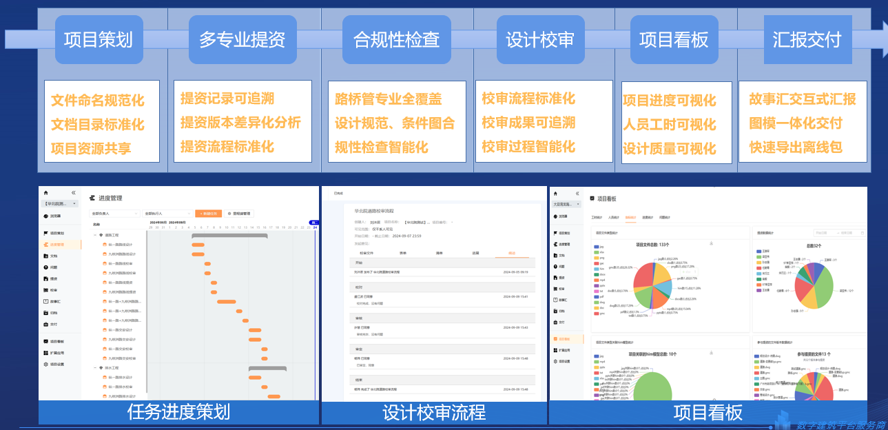 项目策划:项目负责人/专业负责人通过线上的方式组建项目团队,进行任务分配、项目资料管理等,实现项目精细化管理。 基础资料库、构件库:根据项目要求,从构件库、基础资料库中选择所需要的数据,这些数据在设计软件中直接调取使用。 统一软件配置:使用协同软件对道路、桥梁、管线等专业配置进行统一管理(如出图样式、设计规则、规格库等),并同步到设计软件中。