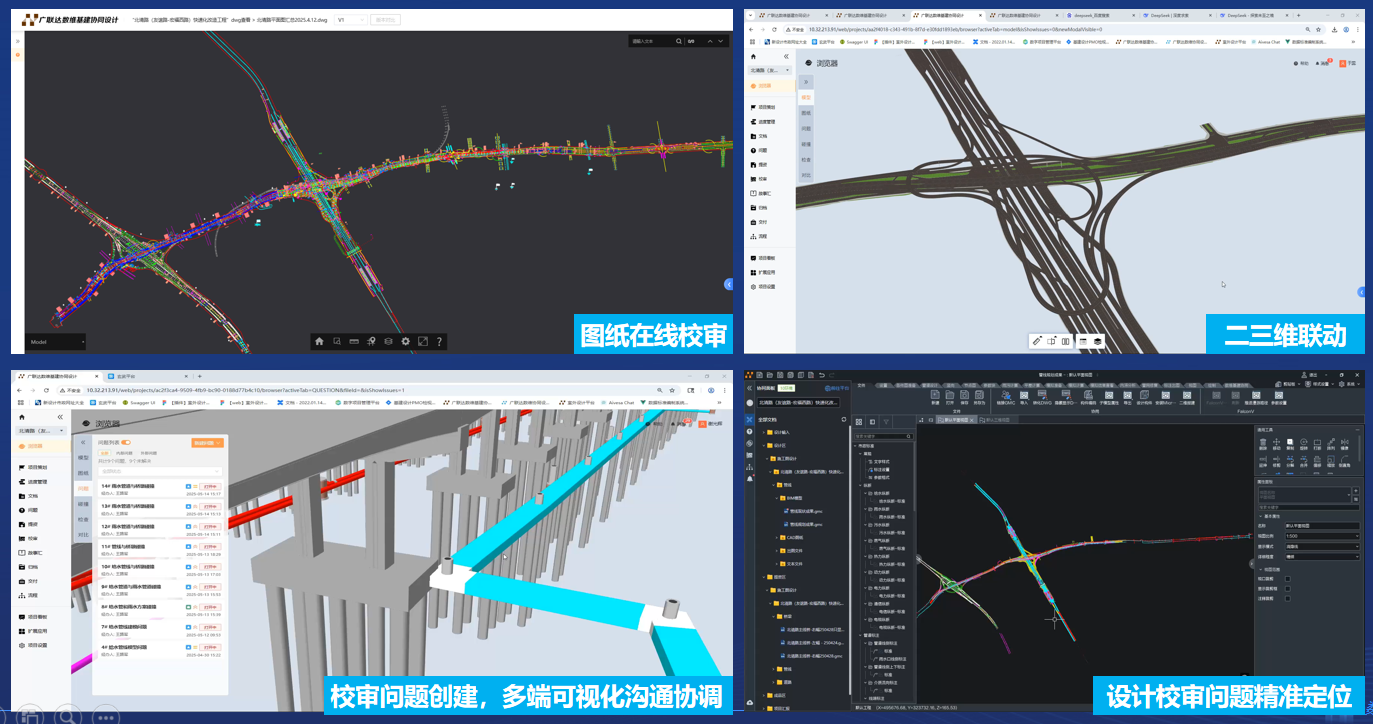 校审流程:使用数维协同软件进行BIM模型和图纸的在线校审,规范校审流程,提升校审效率。 图模一致性检查:使用二三维同屏联动的方式,可视化校审图模一致性。 问题沟通:在设计或者校审过程中从发现问题、创建问题、问题查询定位、问题解决、问题验证,对发现问题形成闭环管理。